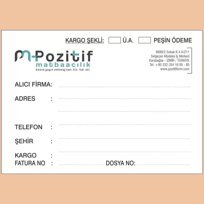 Pozitif Matbaa’nın garanti belgesi ürünleri, işletmenizin sunduğu ürün veya hizmetlerin güvenilirliğini ve kalitesini belgelemek için tasarlanmıştır. Garanti belgeleri, müşterilere ürünlerinizin veya hizmetlerinizin belirli bir süre boyunca geçerli olan garanti koşullarını açıkça belirtir ve markanızın güvenilirliğini artırır. Yüksek kaliteli kağıt ve özel baskı teknikleri kullanılarak üretilen garanti belgeleri, profesyonel bir görünüm sunar ve uzun ömürlü bir kullanım sağlar. Özelleştirilebilir tasarım seçenekleri ile, markanızın kimliğini yansıtan ve müşterilerinize güven veren etkili garanti belgeleri oluşturabilirsiniz. Pozitif Matbaa, her adımda kaliteyi ön planda tutarak, garanti belgelerinizin hem estetik hem de işlevsel açıdan mükemmel olmasını sağlar.Kargo Etiketi